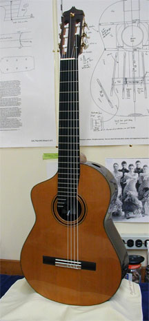 Copy of the 1982 d'Aquisto nylon string jazz guitar. Top is German spruce,