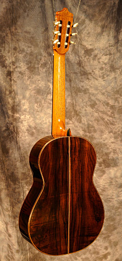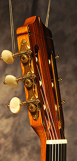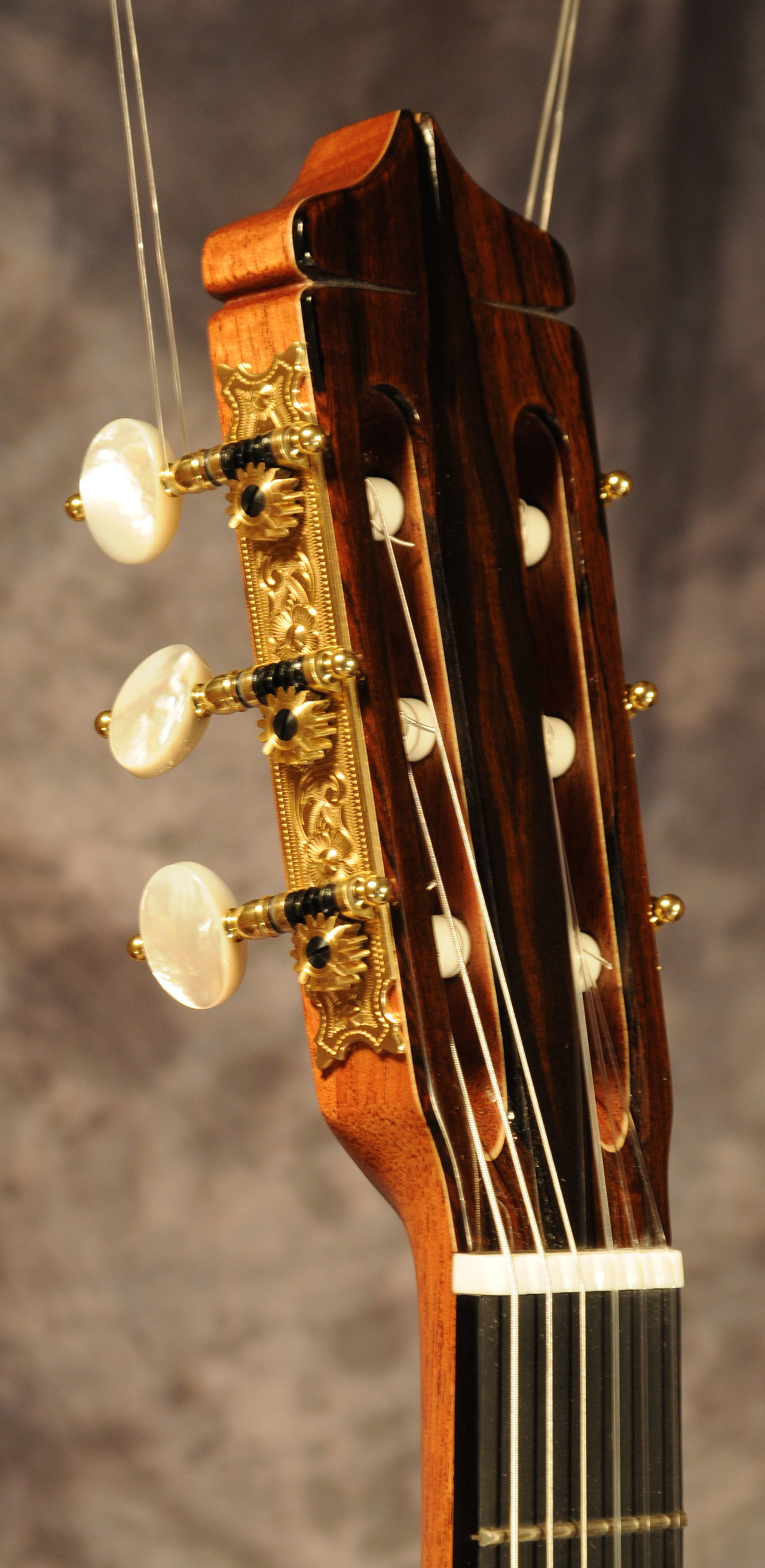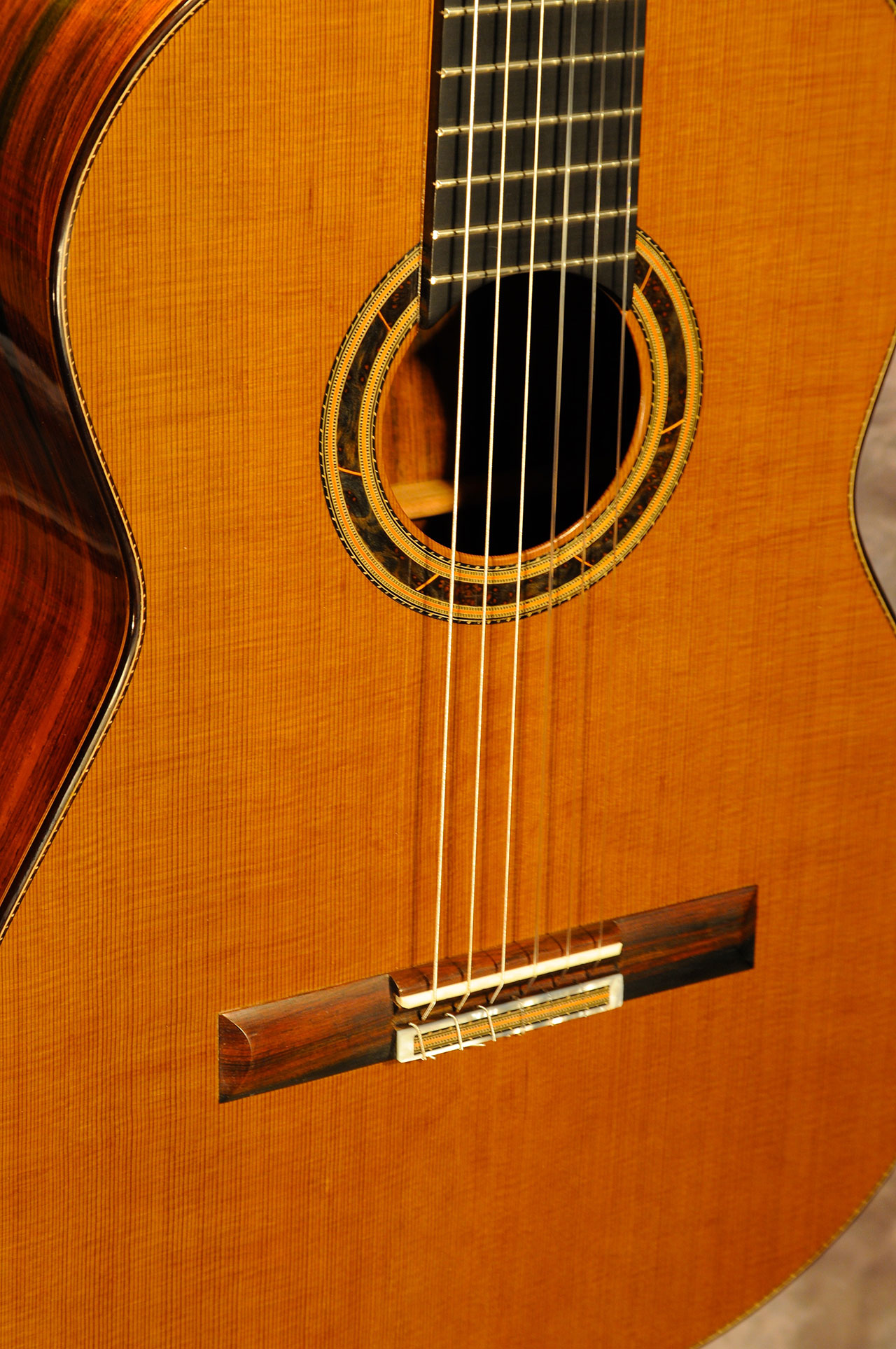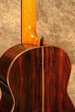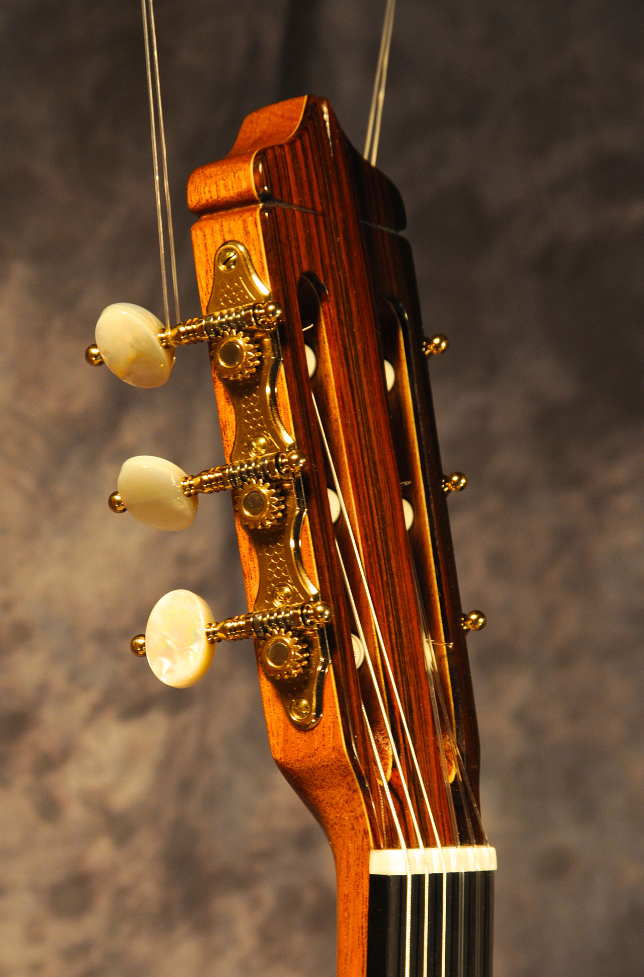 Series 45 number threeSeries 45 number three of four. Ancient Brazilian rosewood from the 1850s, Spruce double top, 650mm scale, 52.5mm wide nut. Rodgers tuners Esteso style, French polish finish. Click on image for full-sized photo